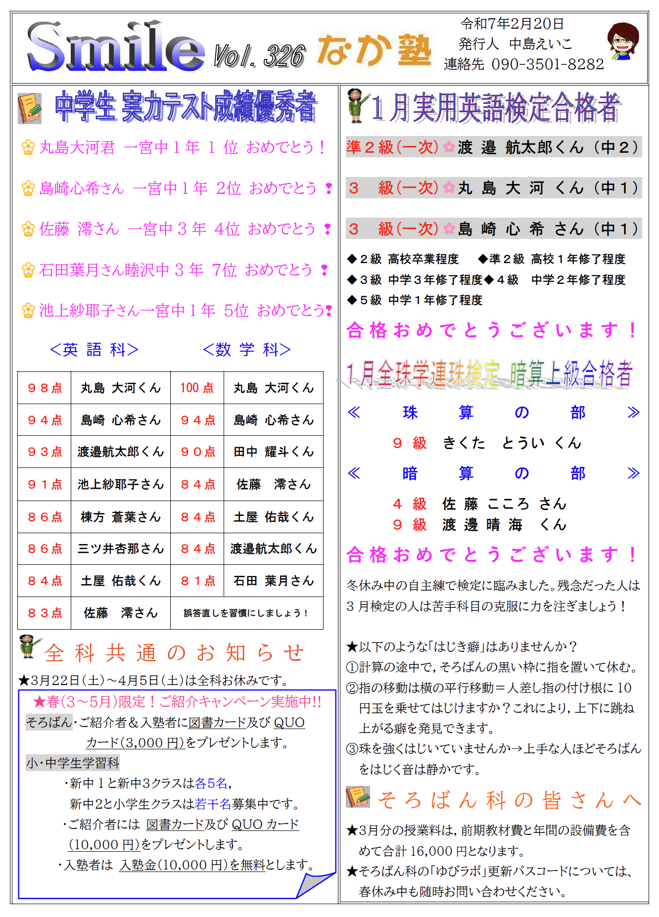 school| 教室名 | なか塾 (公益社団法人 全国珠算学校連盟 認定教場) |
