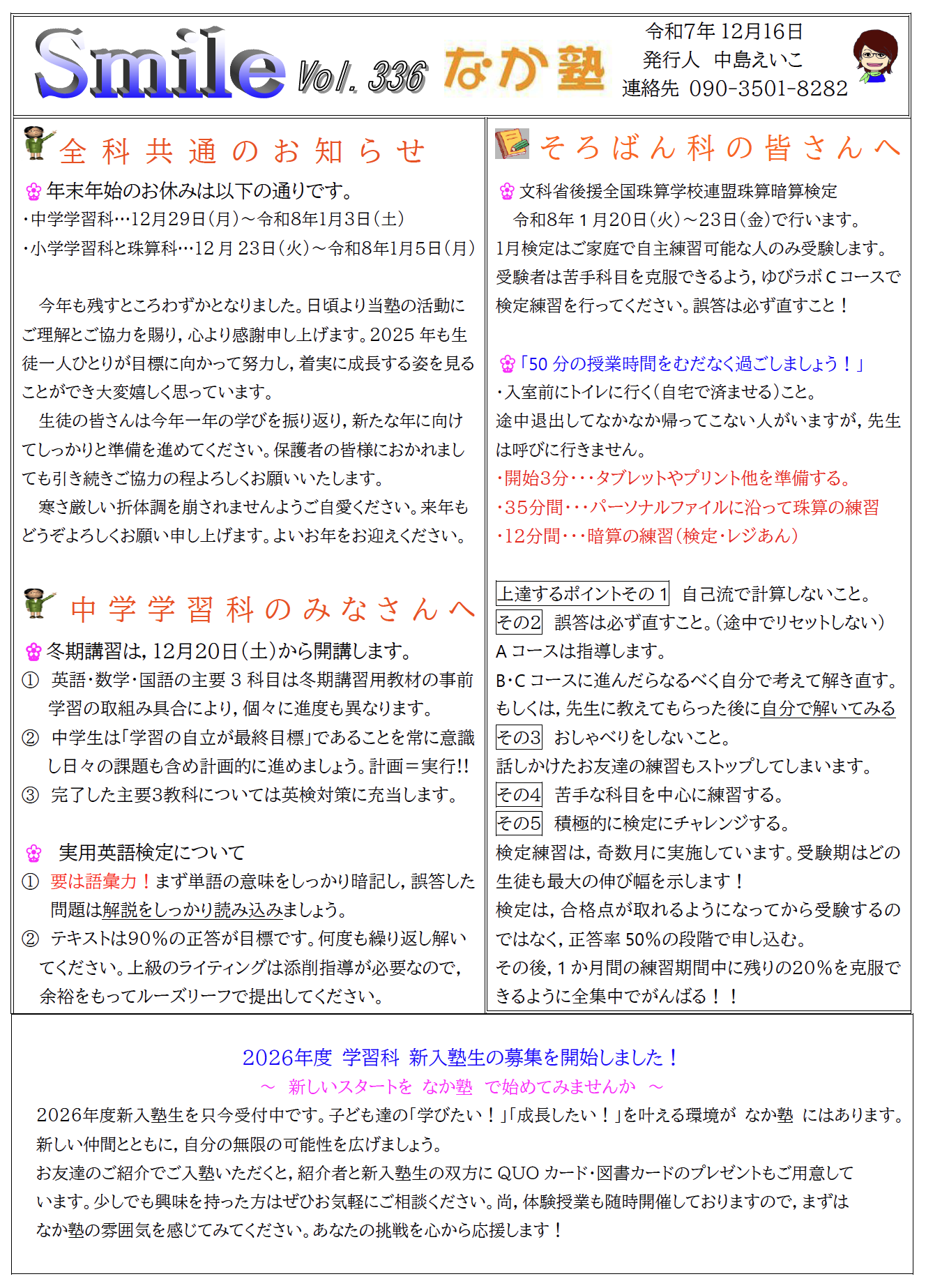 school| 教室名 | なか塾 (公益社団法人 全国珠算学校連盟 認定教場) |
