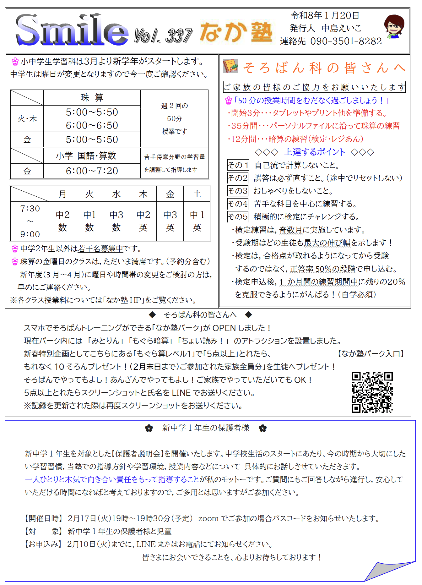 school| 教室名 | なか塾 (公益社団法人 全国珠算学校連盟 認定教場) |